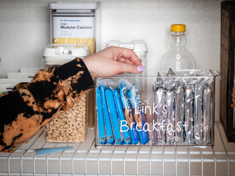 Think about setting up dedicated zones within your pantry, fridge, or a lower drawer for each type of item, like breakfast, lunch, or after-school snacks. Clear bins with labels make it easy for kids to find what they need and even start helping out with packing or prep. When everything has a home, you reduce decision fatigue, support kids’ independence, and bring a little more calm to the kitchen rush.