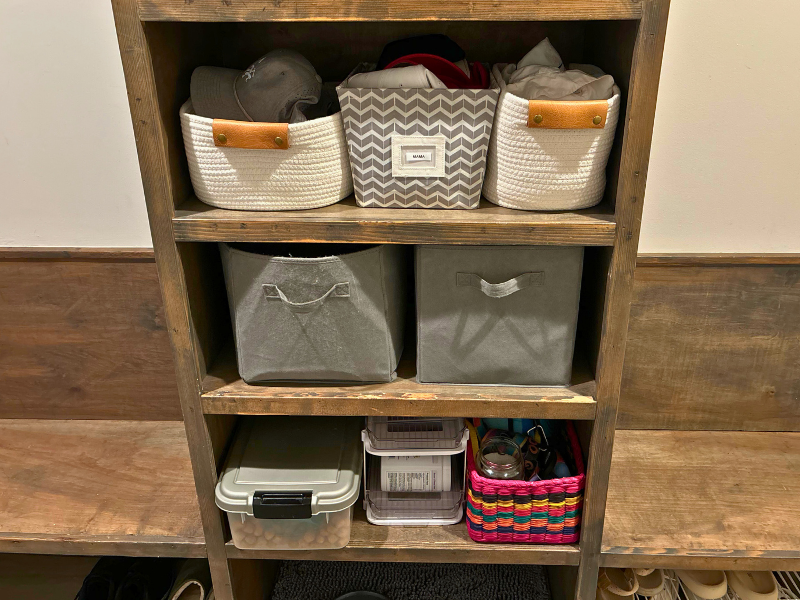 Designate one spot near the door—whether it’s a corner of the mudroom, entryway, or hallway—for school-day essentials. Think: hooks for backpacks, a bin for shoes, a basket for lunchboxes or water bottles.
