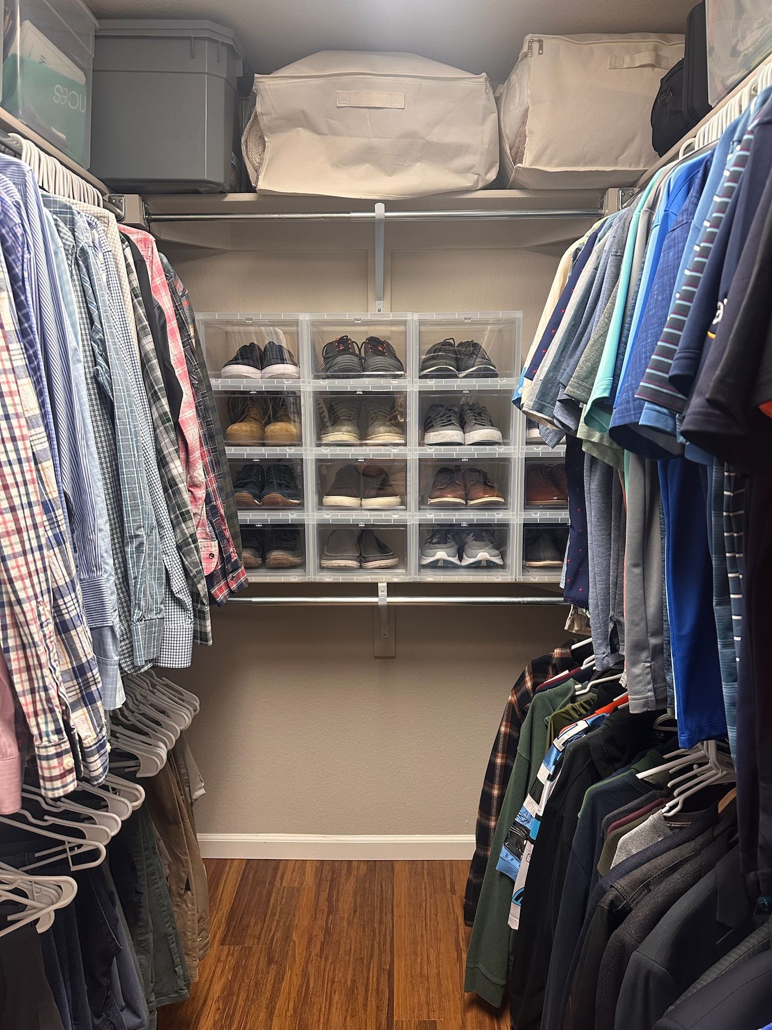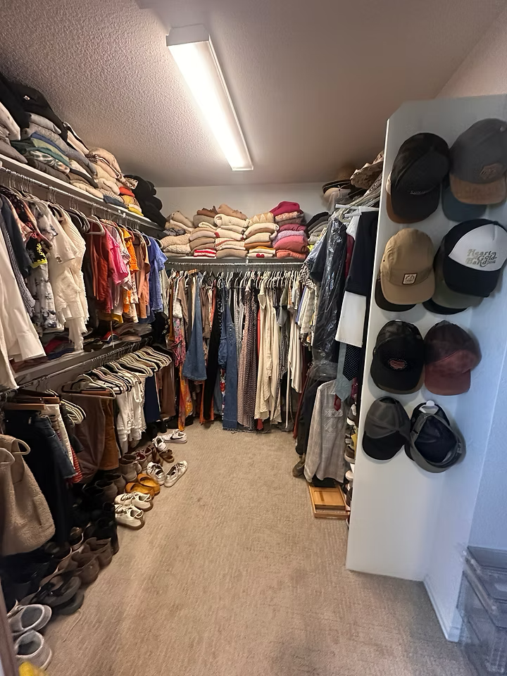 This retired military couple had plenty of closet space, but without flow or clear systems, getting dressed felt frustrating rather than enjoyable. Clothing was scattered, shoes lacked a true home, and the space wasn’t working for how they lived day to day.